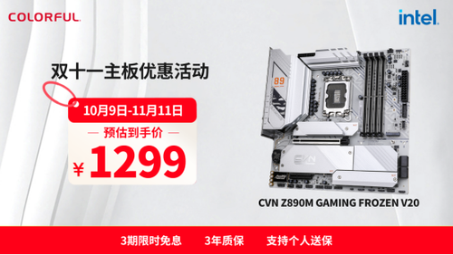 传送门:CVN Z890M GAMING FROZEN V20 战列舰主板 活动到手价1299元