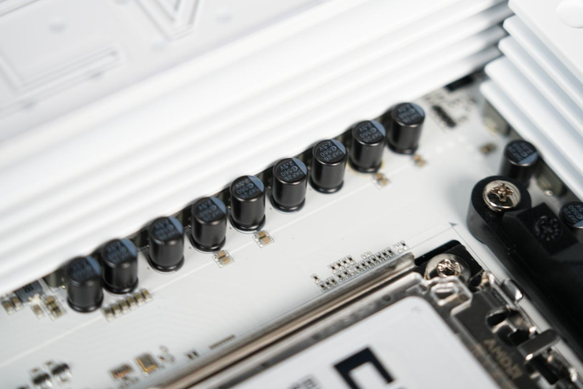 并且外接双8Pin的供电,也能看出这款主板在供电方面的表现非常豪华,能够为处理器提供稳定的供电,单纯从供电的用料角度来看的话,这款主板轻松支持AMD锐龙 9 9950X也是毫无问题的。