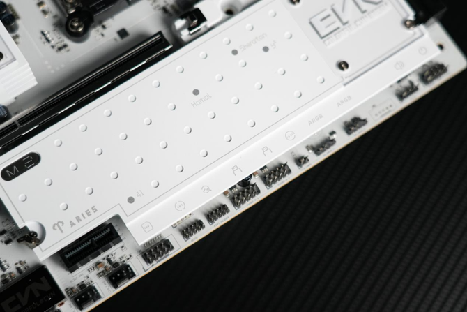 风格上看的话,同样延续了家族的“冰霜装甲”全覆盖,也能看到整个PCB也是选择了白色,从做工的角度来看的话,装甲的喷漆非常细腻,属于纯白的冷色调,质感表现出色。