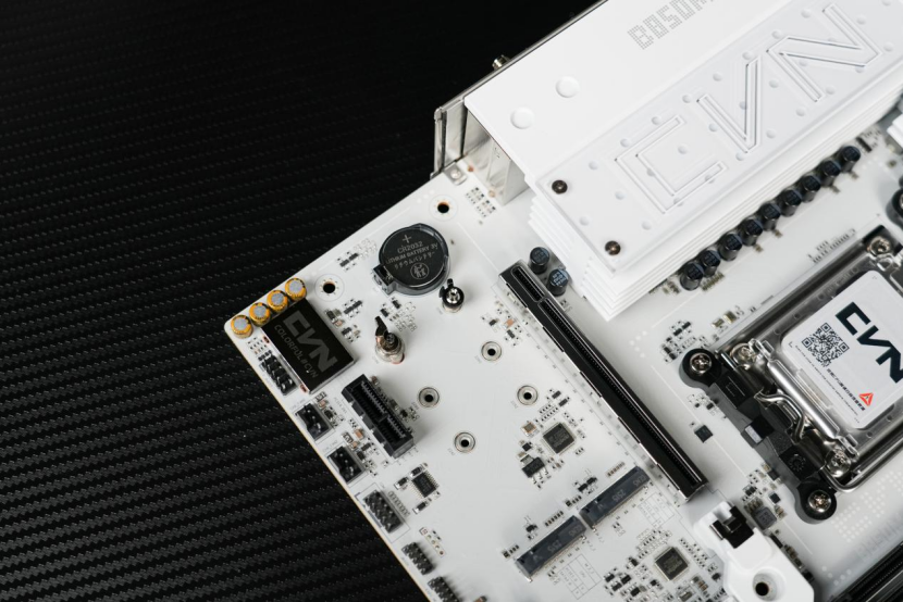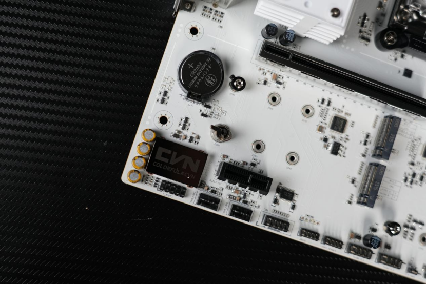 对于游戏玩家来讲的话,七彩虹B850M ARK 方舟还提供了一整根的PCIe 5.0x16插槽,拓展性没得说,并且插槽同样也经过了金属的加固,细节部分表现很好,同时显卡还做了快速释放的设计,让我们拆装显卡的时候,更为轻松,装机体验更好。