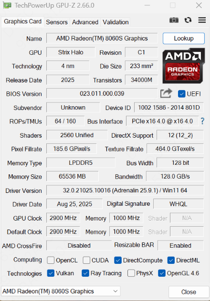 同时,这颗CPU集成了RDNA 3.5架构的Radeon 8060S GPU,拥有40组计算单元,频率为2900MHz,依托“统一内存架构”技术,能从内存中最高调配96GB的专属显存和16GB的共享显存,打破了传统显存的瓶颈,降低了数据延迟,为大模型本地部署提供了有力支持,不仅能流畅运行1080P分辨率下的主流游戏,在3D建模、动画制作、影视剪辑等专业创意设计领域,也能提供流畅的工作流效率。在AI算力上,它搭载了XDNA 2架构的AMD锐龙AI NPU,AI算力高达50 TOPS,能高效处理各类AI相关任务。
