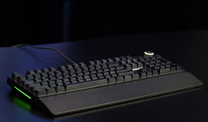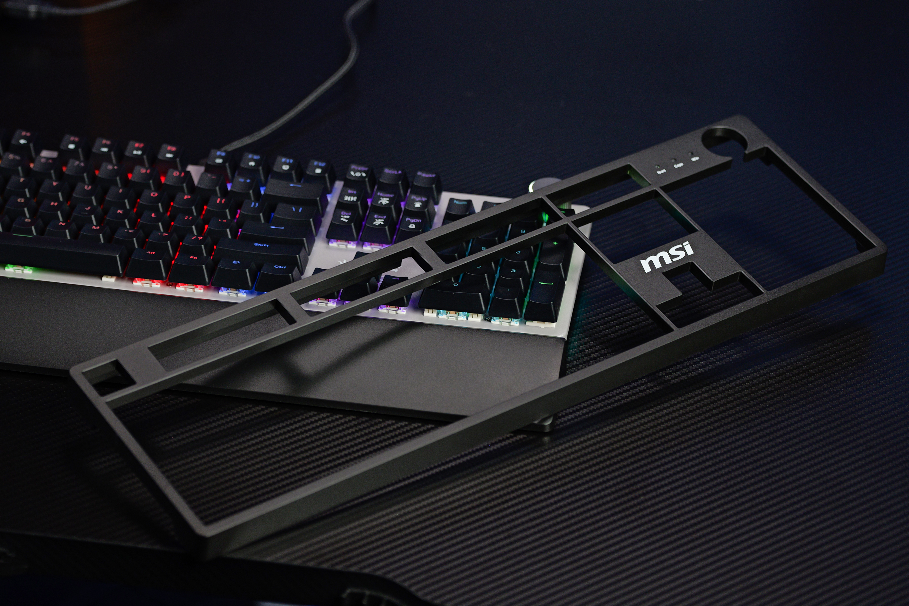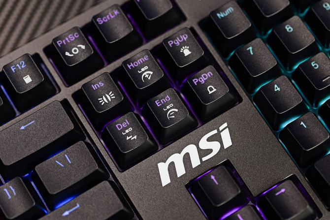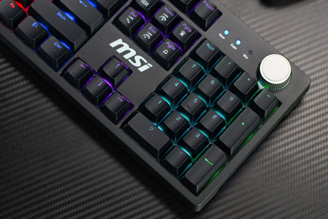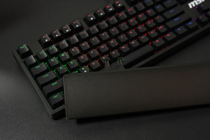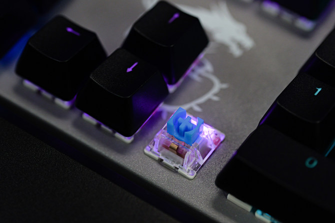 轴体方面的话,这款键盘采用了微星定制的机械轴体,并且支持热插拔设计,5脚的插针,能够兼容目前市面上绝大部分的轴体,用户可以根据自己的喜好进行自由搭配,满足客制化的定制用户的需求。