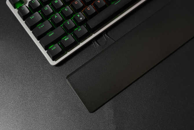 不仅如此,这款键盘还在包装内附赠了磨砂质感的可拆卸的键盘掌托,玩家可以根据自己的需求自由搭配安装,让我们使用的时候,能够更好地衬托我们的手掌,提升舒适性,尤其是长时间的打字,缓解更多的压力,满足长时间使用需求,和对面「激情对线」的时候,打字效率更高。