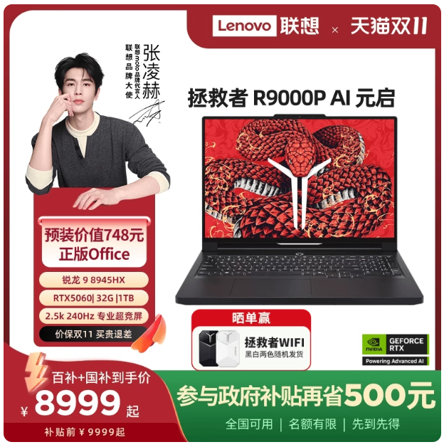 手头预算相对紧张的用户也可以选择搭载锐龙9 8945HX的配置,采用Zen 4架构和5nm制程,是锐龙8000系列中的旗舰处理器,其性能释放也非常强劲。与之搭配的显卡有RTX 5060/5070/5070Ti,各方面的属性基本都已点满,如果你对品质和表现都有严苛的要求,闭眼入拯救者错不了。现在购机还能参与国补、政补,晒单还送拯救者WIFI。