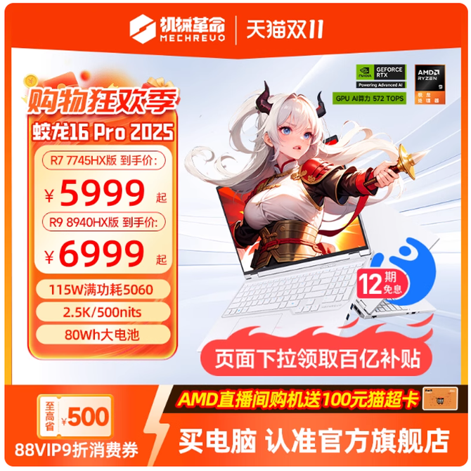 机械革命蛟龙16 Pro 2025无疑是笔记本市场中将性能拉高后到手价最为亲民的代表机型。其实蛟龙16 Pro也一直在演化,搭载的处理器不仅有锐龙7 7745HX,锐龙9 8940HX,还有锐龙9 8945HX,锐龙9 9955HX等不同处理器配置,现今天猫商城主推搭载锐龙9 8940HX+RTX 5060规格的笔记本有着极高的性价比。