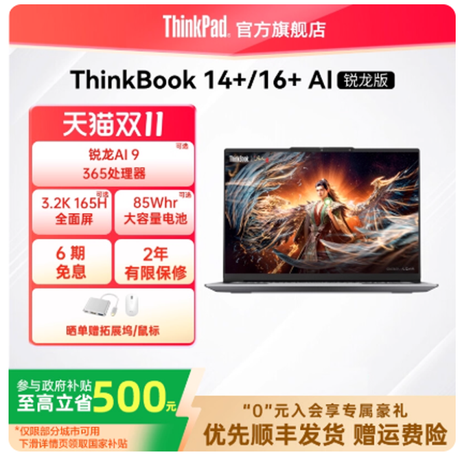 搭载锐龙7 H 255,AI 7 H 350,AI 9 365三种不同的处理器,其中这次双11主推的为最高配的规格。另外,它还有着3.2K 165Hz的全面屏视野,85Wh的大容量电池,现在购机晒单还赠拓展坞/鼠标,并享受6期免息。