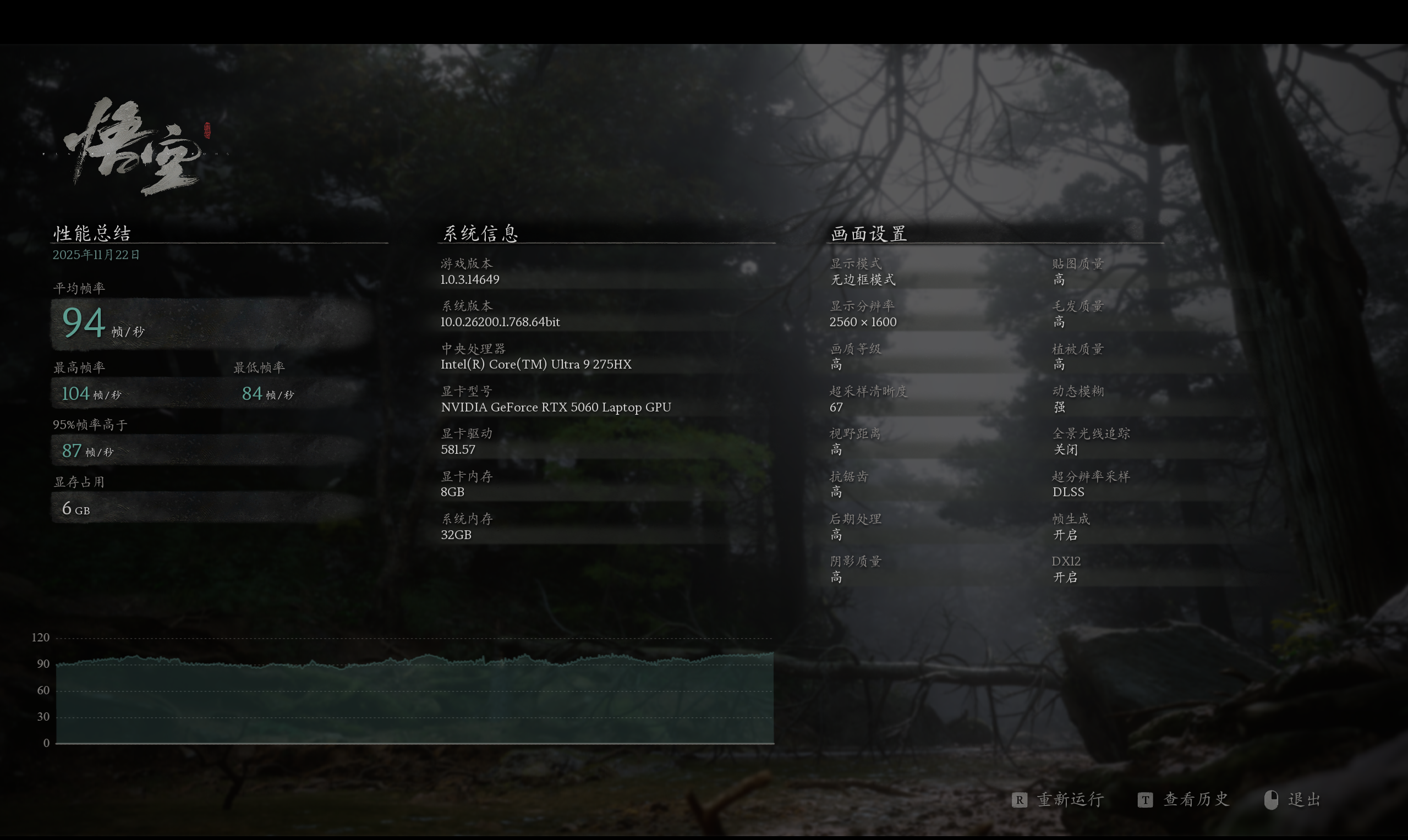 运行《黑神话:悟空》这样的大型游戏,同样能够释放英睿达DDR5 6400高频内存的性能,在2.5K、高画质下,可跑出平均94帧的流畅运行。