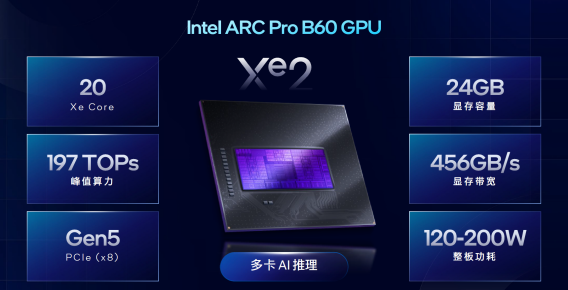 随着AI应用的快速演进,尤其是随着多模态大模型的普及,显存容量与数据处理效率的重要性进一步凸显。英特尔锐炫Pro B60通过强大的硬件配置,为执行复杂的AI推理任务提供澎湃算力支持。