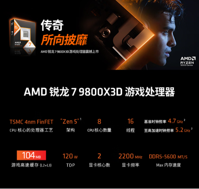 AMD 锐龙7 9800X3D处理器购买链接: