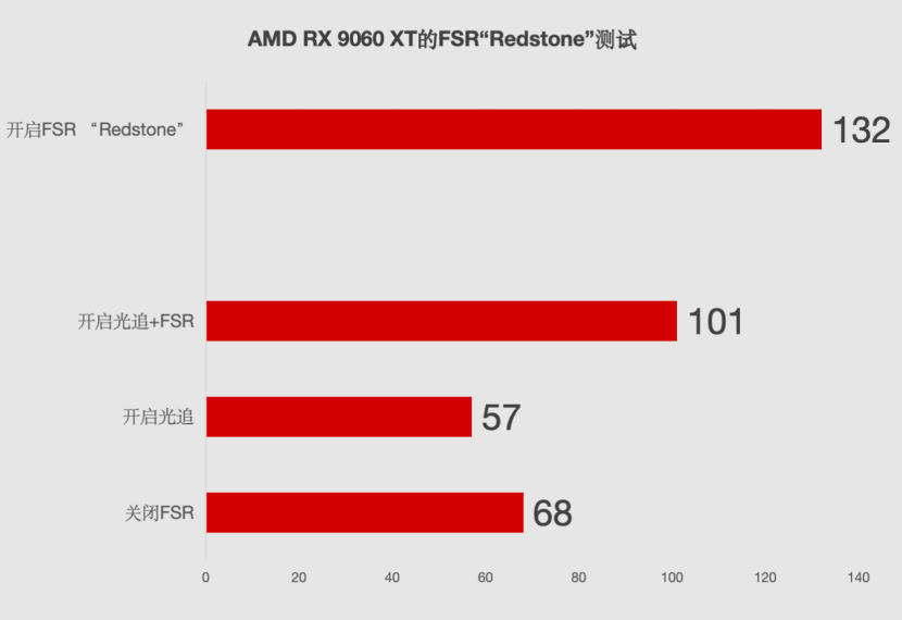 测试分辨率我们选择了2K进行测试,可以看到在开启不同的设置之后,游戏帧数的变化,在使用了全新的AMD FSR Redstone之后,保证兼顾光追和游戏丝滑体验的同时,游戏帧数有了翻倍的提升,游戏更加丝滑流畅,后续我们还测试了4K分辨率,在默认的情况下,游戏帧数为58,开启FSR Redstone之后游戏帧数更是能够提升到118FPS,性能同样优秀,在4K分辨率下也依旧能够流畅运行,所以配合这项技术,让主流级的显卡也能实现4K高刷光追游戏,性能着实惊艳。