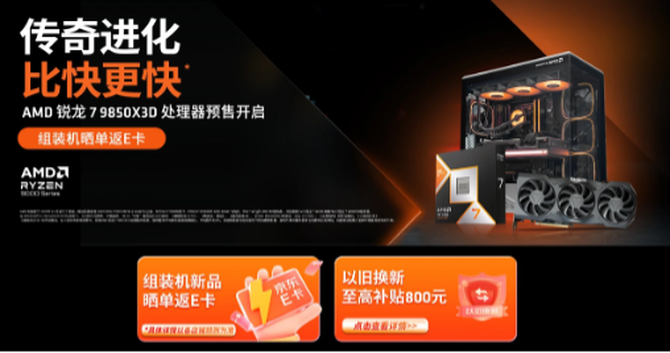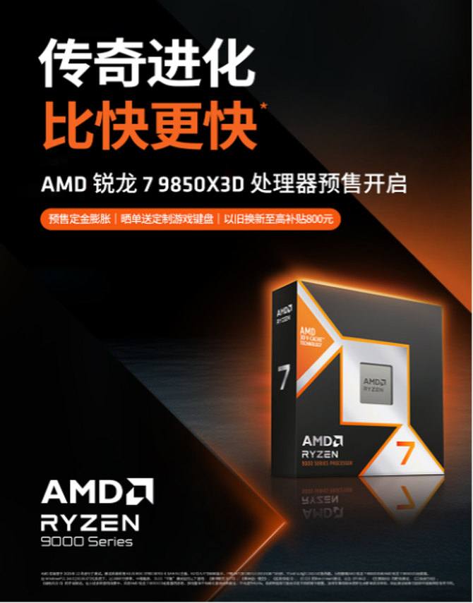 目前AMD锐龙7 9850X3D处理器及组装机产品已经在AMD京东自营旗舰店正式开启预售了,想要第 一时间体验“比快更快”的X3D处理器,感受锐龙“传奇进化”的DIY玩家们就请直接前往上面的链接参与预售活动吧!