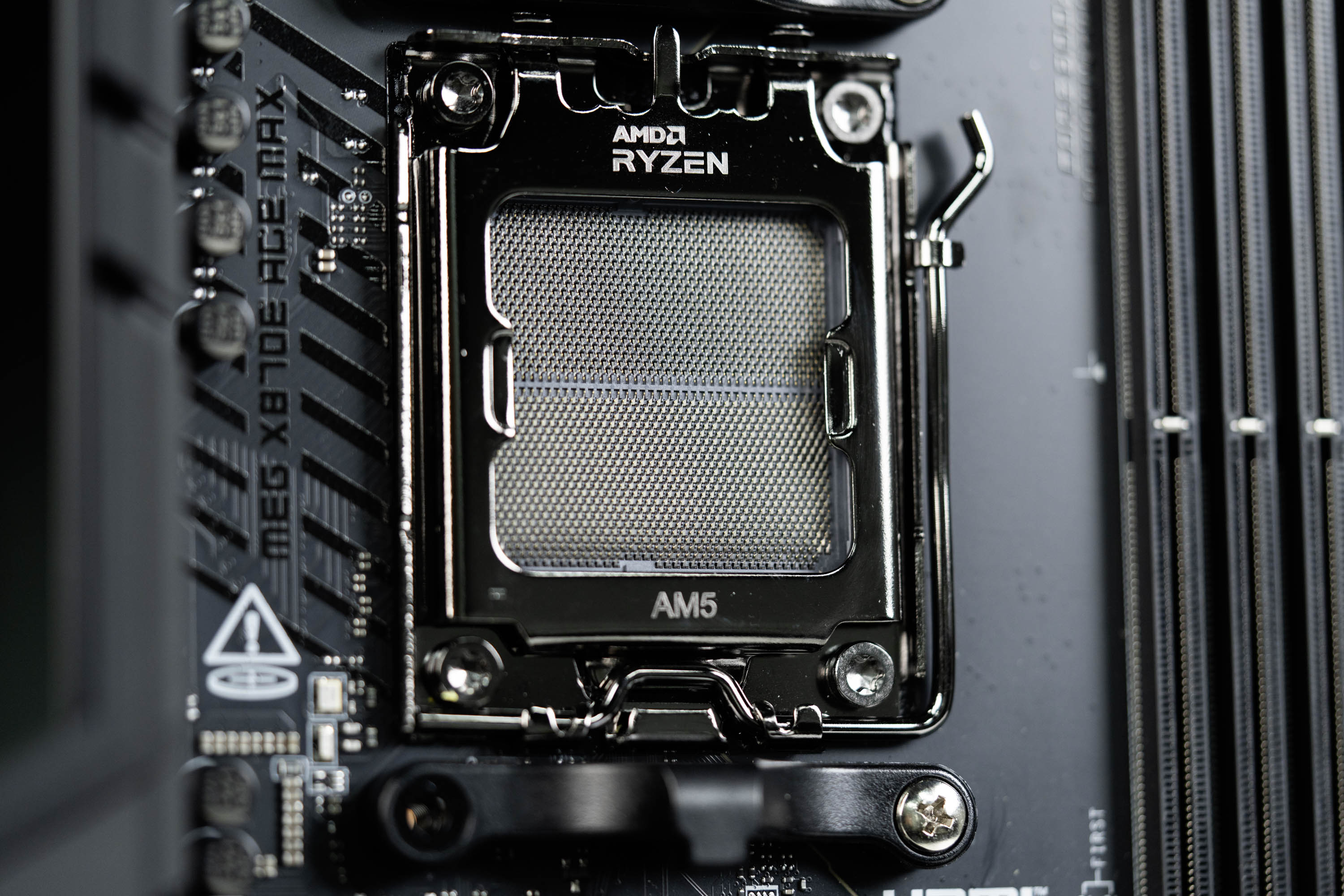 本次测试使用的主板的是微星MAG X870E ACE MAX战神,这款主板是为了AMD锐龙9000系列高阶处理器打造的旗舰级的高端定制主板,主板采用了18+2+1强化供电,并且支持110A的电流供电,配合上AM5接口,能够轻松发挥AMD全系列处理器的全部性能。