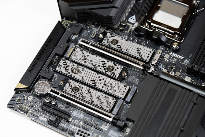共计5个M.2接口,配合上3个PCIe 5.0接口,轻松满足拓展性能要求,并且还有第二代的免工具拆卸M.2固态硬盘、直插式WIFI天线以快速释放显卡卡扣,让大家在装机的时更加便捷。