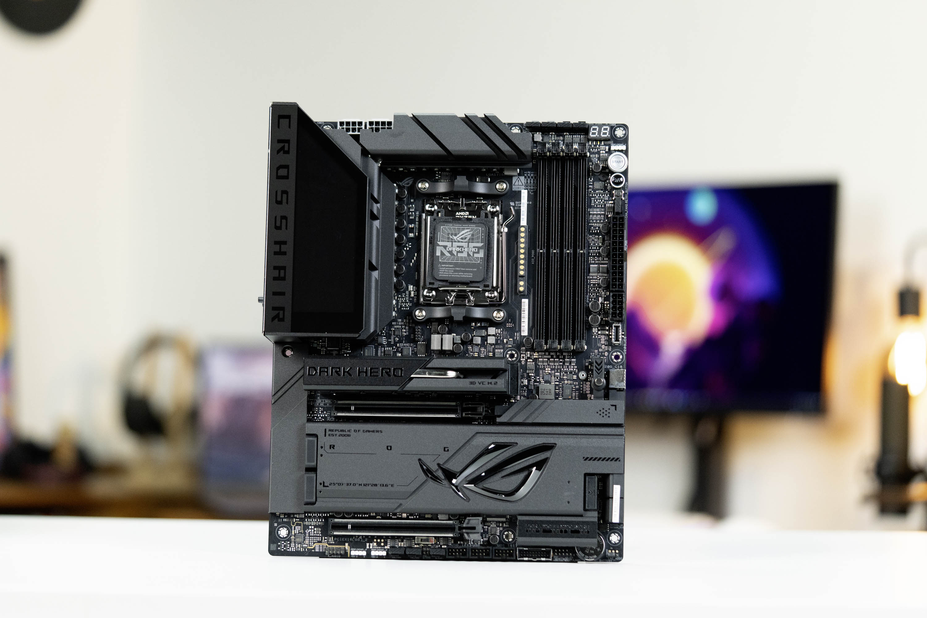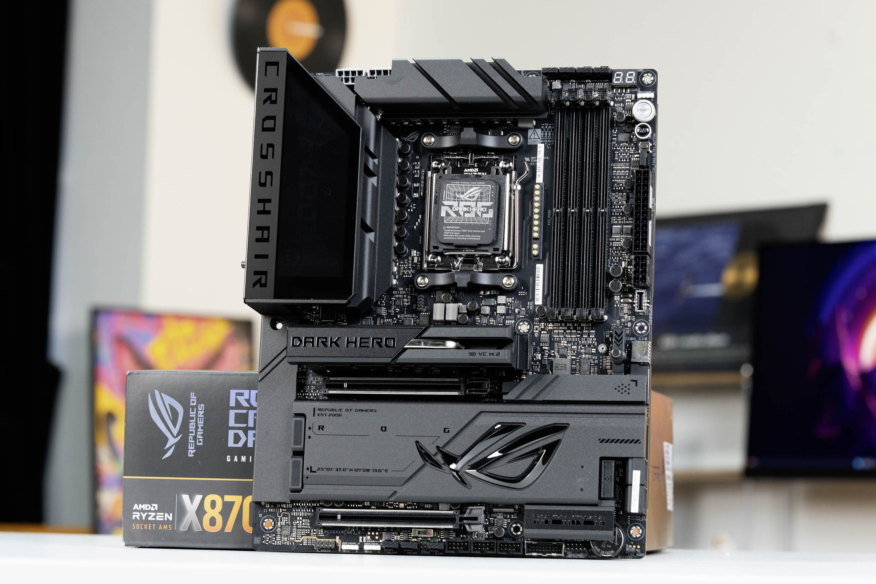 恰逢我们在第 一时间拿到了AMD锐龙7 9850X3D处理器,正好借着这个时机,来和大家一起来聊一下ROG CROSSHAIR X870E DARK HERO这款主板究竟表现如何,为了方便阅读,后主板简称为ROG X870E DARK HERO。