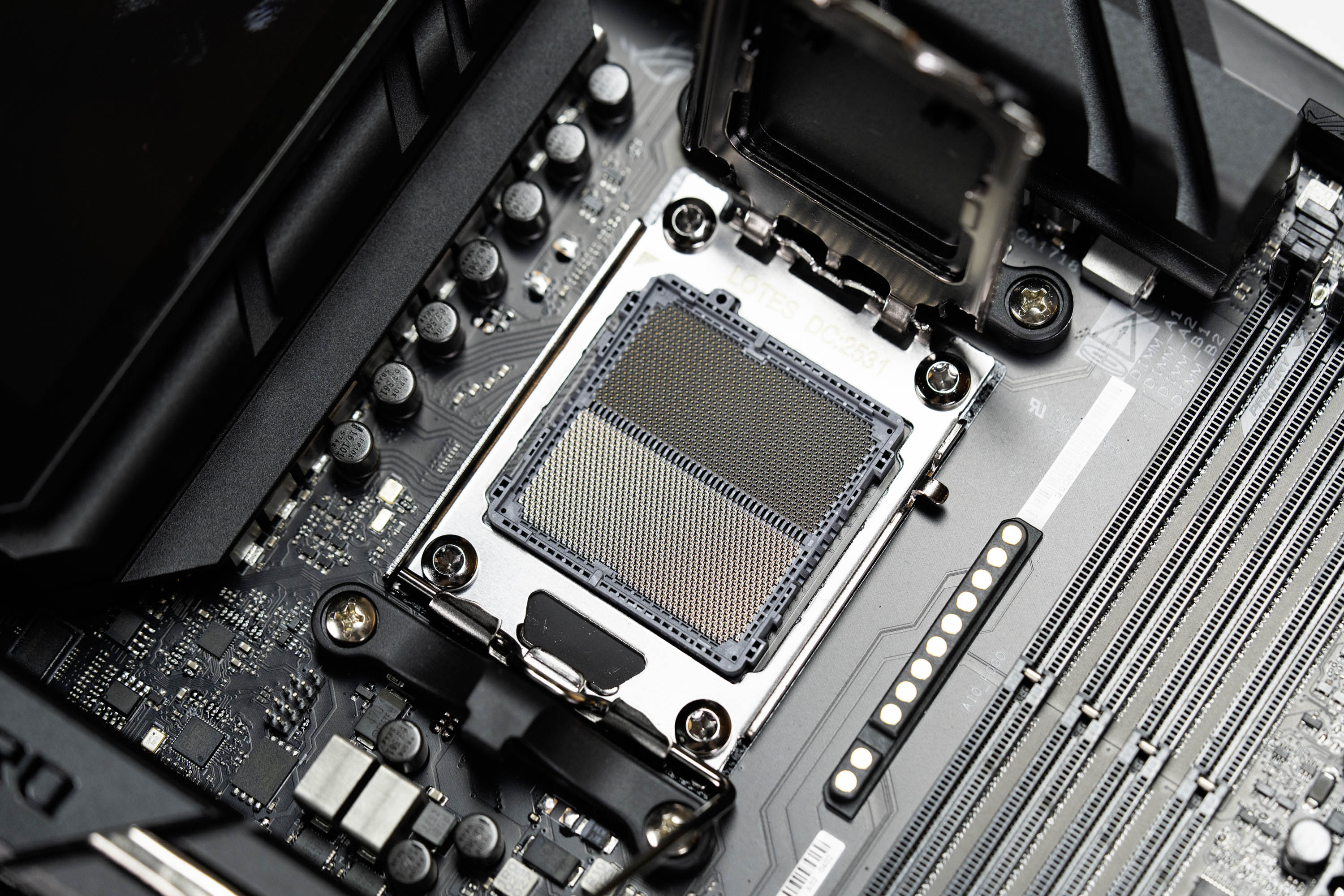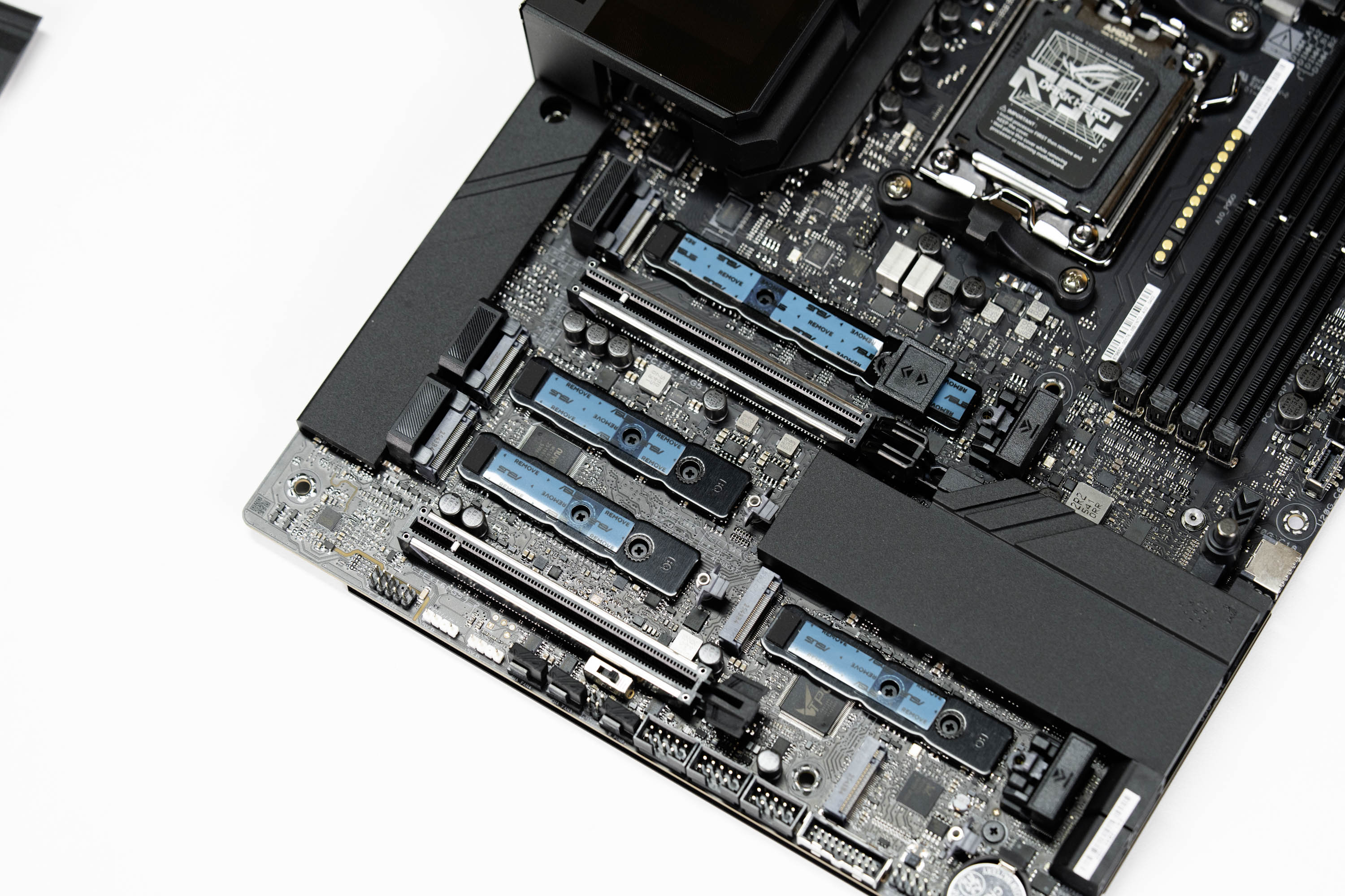 拿掉防尘保护盖之后,就能看到主板本体了,主板的底部和内存插槽位置同样做了泡棉的保护,防护细节拉满。