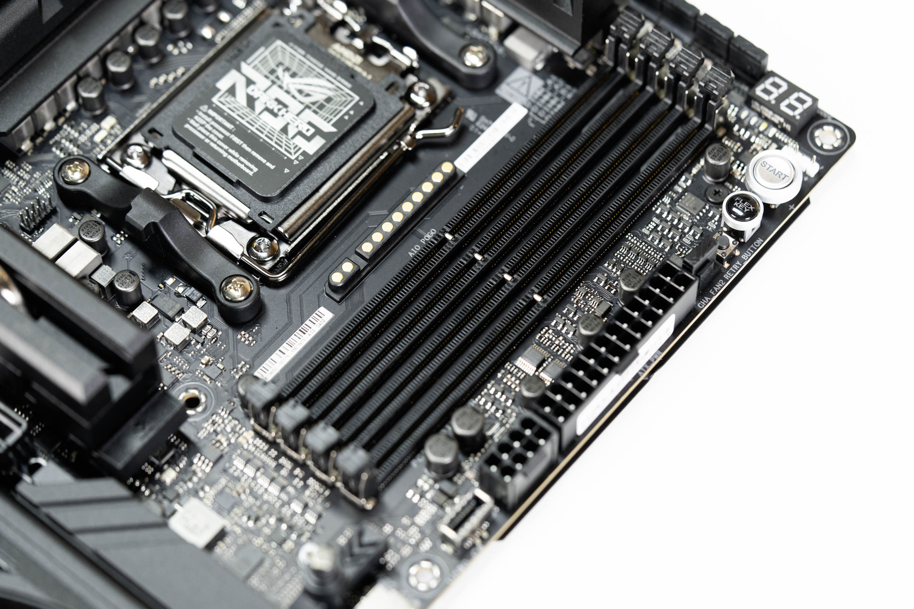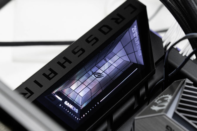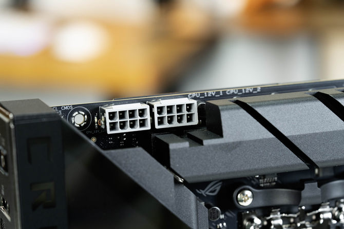 顶部右侧的CPU和水泵4Pin插针都做了带有ROG信仰之眼LOGO的防尘保护盖,细节的地方凸显ROG的用心。