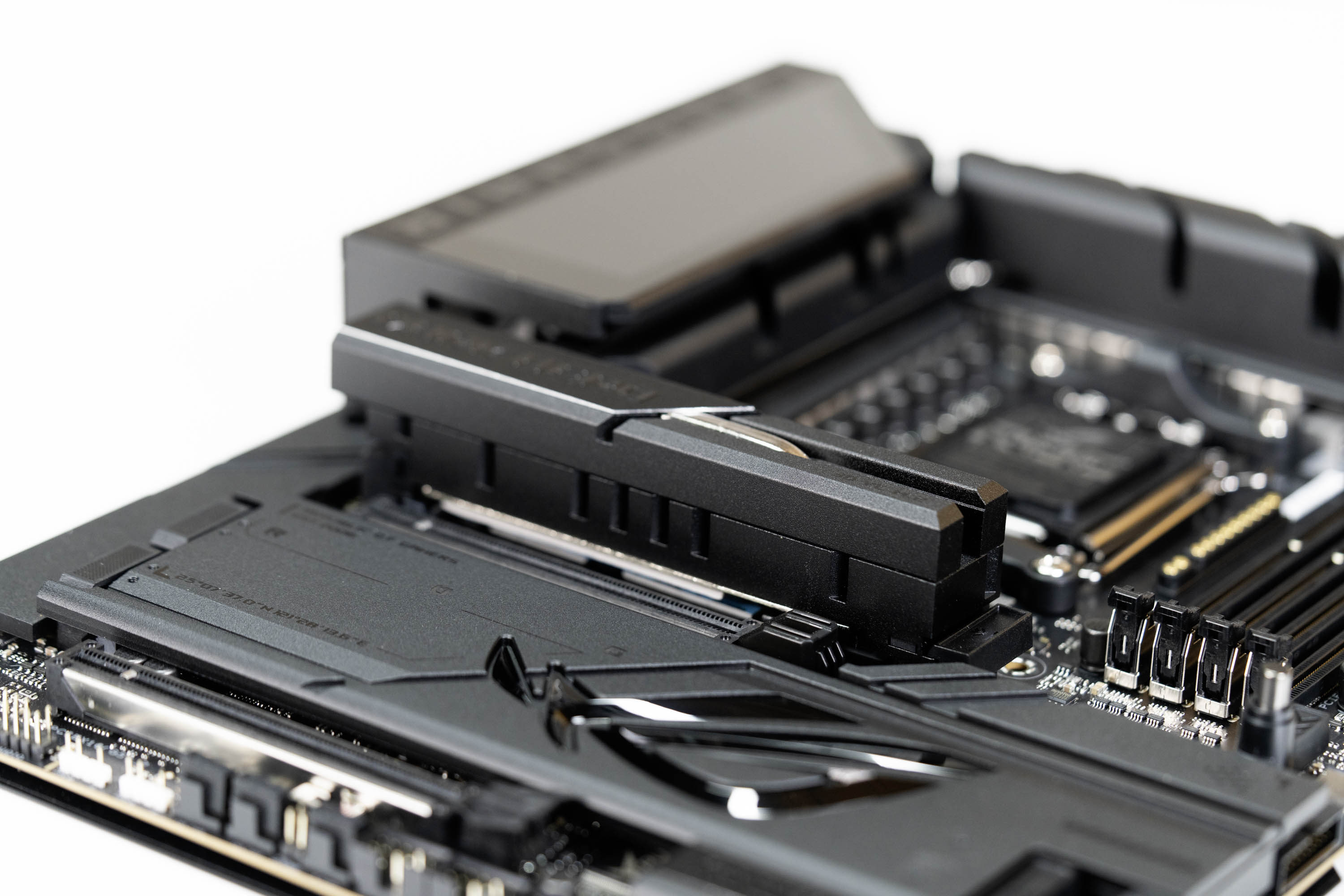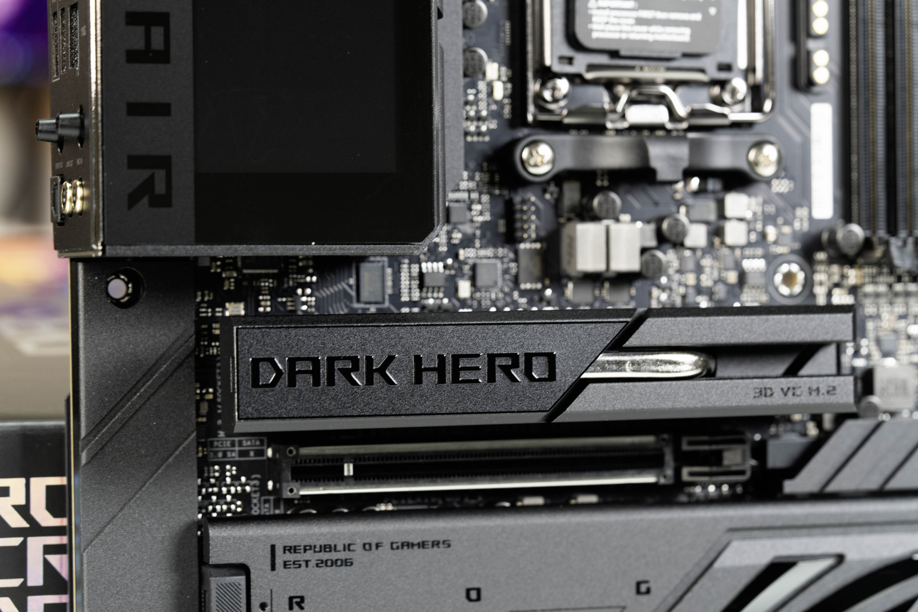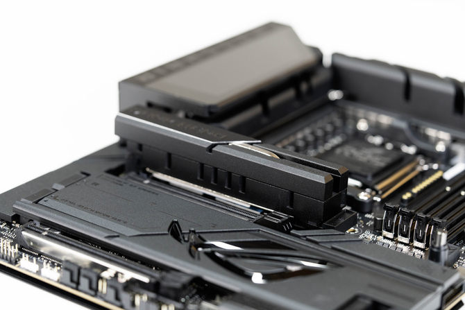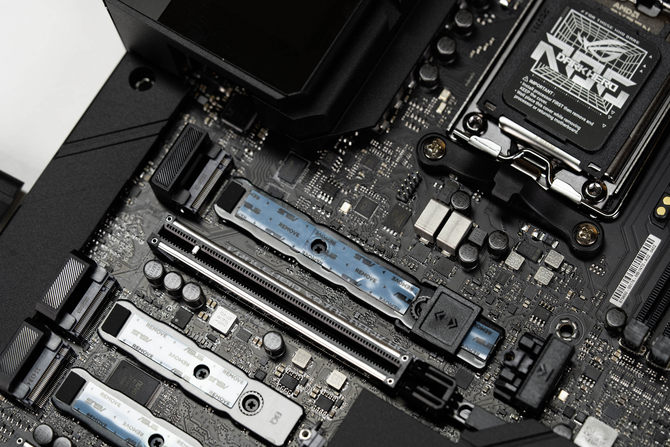ROG X870E DARK HERO主板的第 一条M.2固态硬盘位采用了加强的散热马甲,其尺寸非常夸张,并且底部采用了3D VC导热技术,这项技术通常使用在服务器、AI芯片和高端显卡上,在导热和散热效率方面,远超传统的散热装甲,对于高性能的PCIe 5.0 M.2固态硬盘来讲,能够带来更优秀的散热表现,并且发挥其全部性能。