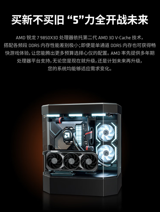 在扩展性与兼容性方面,AMD 锐龙7 9850X3D处理器采用了AM5接口,为用户提供了长远的升级空间。“ZEN5+DDR5+Gen5 SSD”已经成为目前DIY市场最主流的攒机配置,买新不买旧,“5”力全开战未来!