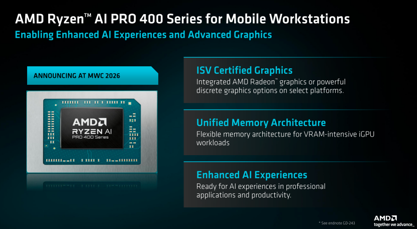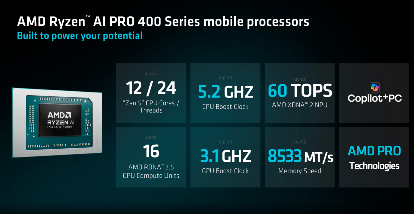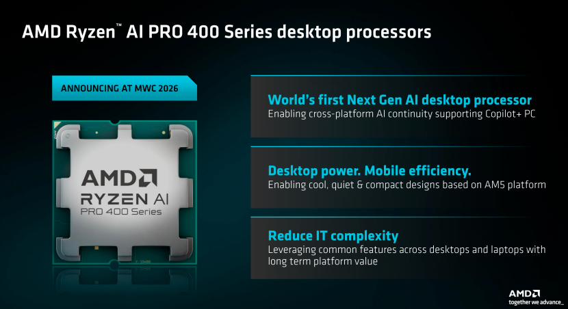 今天AMD在MWC上正式公布面向商用级笔记本电脑和台式机的「AI PRO 400」系列处理器,其旨在通过硬件级的AI算力部署,伴随着更安全、更容易部署以及更出色的每瓦性能,为商用笔记本电脑以及台式机提供更全面的支持。