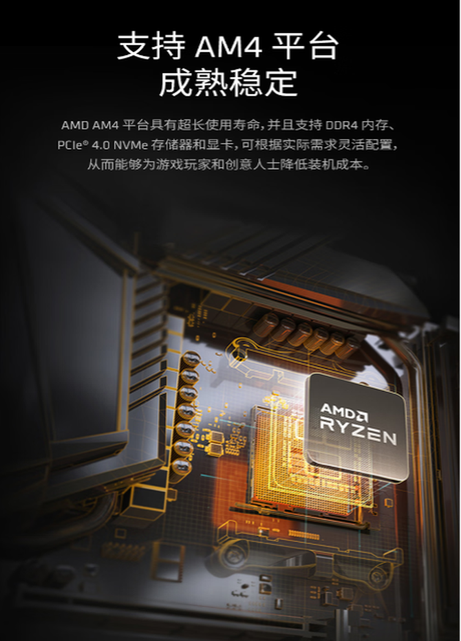 AMD 锐龙5 5500X3D处理器在游戏方面拥有优秀的表现,在各种热门竞技网游和3A大作中表现都十分强劲,而且在游戏时不仅温度低功耗更低,让大家长时间游戏也不会有任何使用负担。锐龙5 5500X3D处理器适用于AM4插槽,所以即使是用X570/B550/A520等主流AM4主板的游戏玩家依然可以直接购买处理器进行升级,同时支持DDR4-3200内存与PCIe 4.0固态硬盘,无需更换平台即可实现性能跃升。