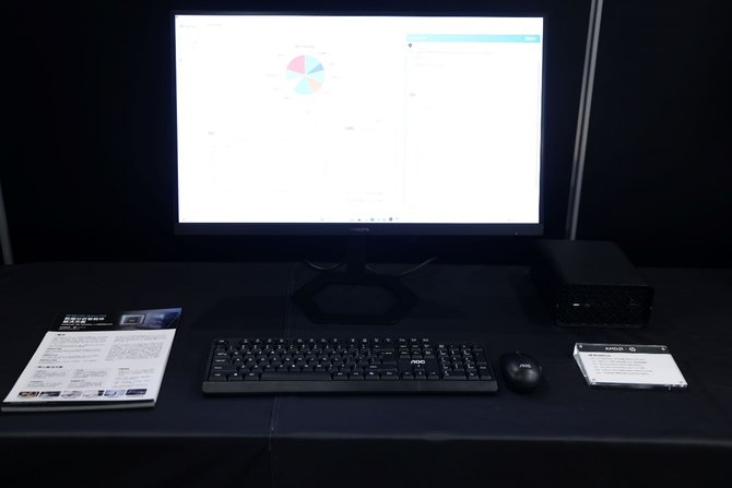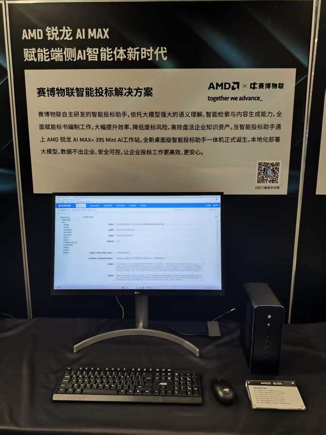 现场展示了众多的AMD锐龙AI Max系列产品,涵盖一体机、Mini工作站、笔记本、移动工作站和水冷工作站等齐全的产品形态,并演示了AMD锐龙AI Max系列推动算力下沉,赋能具体垂直行业的不同场景实践和成功应用。下面首先来看一下现场的解决方案展示。