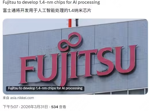 3月31日消息,富士通正计划开发一款用于 AI 服务器的定制芯片,将采用 Rapidus 先进的 1.4nm 工艺制造,实现从研发到生产的日本本土化。