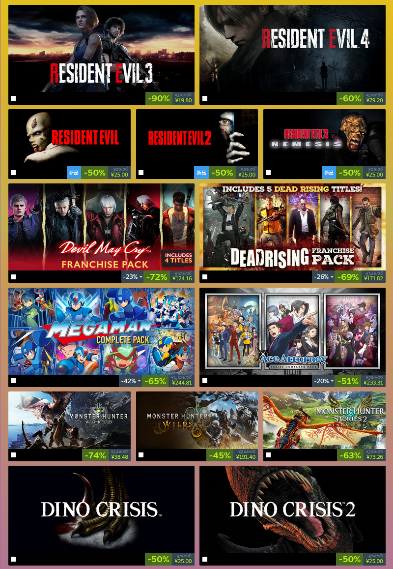 近期STEAM最火爆的3A大作当属《生化危机:安魂曲》了,作为开发厂商的CAPCOM趁热打铁,开启了专属的春季特卖,还上架了《生化危机》系列最原汁原味的三部老作品,一时之间成为了CAPCOM粉丝们的狂欢节。这次春季特卖可谓诚意满满,最多高达90%的折扣真的让玩家们没有理由拒绝,比如《生化危机3重置版》19.8的价格相信没有朋友会忍不住加入库中。当然《怪物猎人》系列、《洛克人》和《逆转裁判》的大集合也十分值得入手。