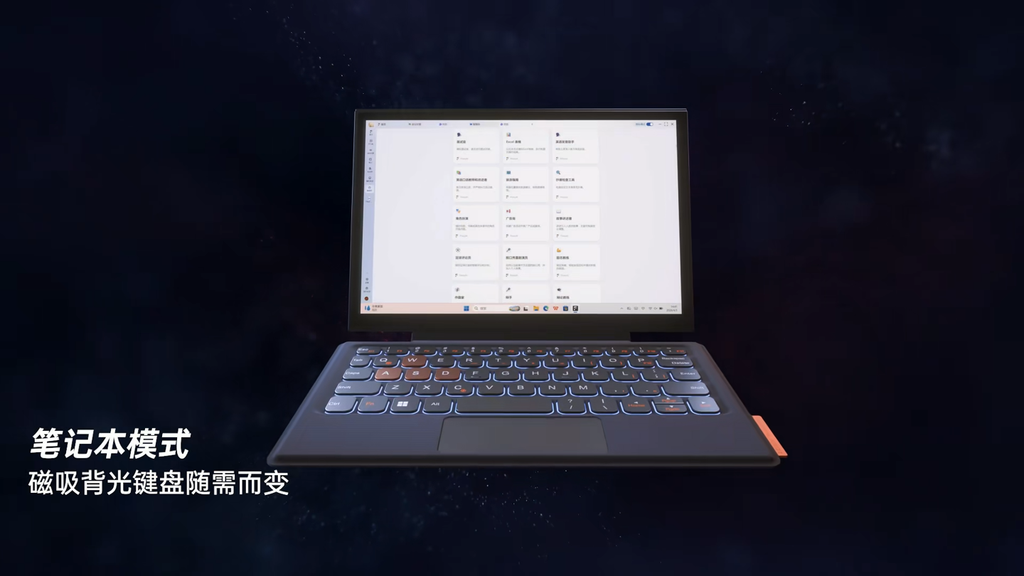 操控方面配备电容摇杆加电容触控板加两段式扳机,支持微动与线性自动切换,搭配可拆卸分体式手柄和独立无线连接基架。微动开关按键采用高透玻璃水晶材质,支持更换十字键帽。续航方面内置 85Wh 大电池,配备磁吸键盘,支持笔记本电脑模式。