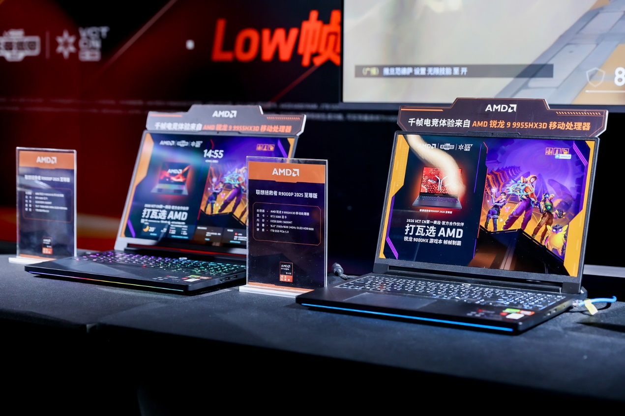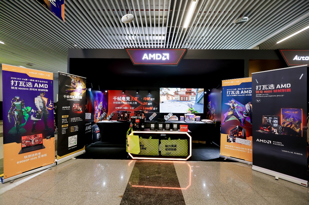此次 VCT CN 杭州站,AMD 不仅将千帧电竞技术赋能职业赛场,更将这一体验带到大众身边,让电竞爱好者零距离感受高性能硬件带来的游戏乐趣。赛事期间,AMD 在杭州西湖体育馆设置AMD 千帧电竞区,现场展出搭载锐龙 9000系列处理器和Radeon RX 9070XT显卡的主机以及多款联想R9000P至尊版游戏笔记本,还原职业赛场同款千帧电竞体验,到场观众可亲自上手体验《无畏契约》高帧率玩法,直观感受千帧画面带来的流畅操作与视觉冲击。
