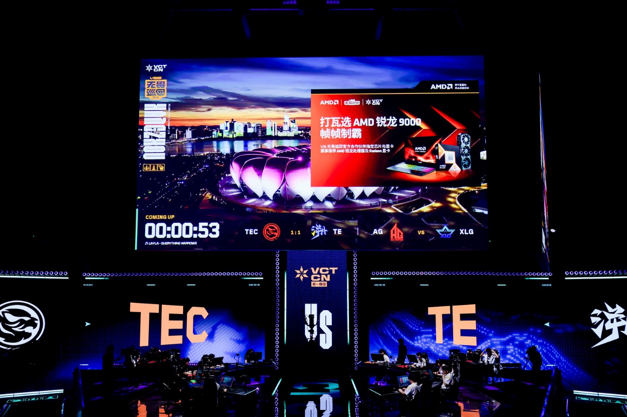 为期三周的《无畏契约》V26 无畏巡回 CN 联赛(以下简称 “VCT CN”)杭州站暨 2026 无畏契约冠军巡回赛 CN 联赛第 一赛段常规赛于杭州西湖体育馆圆满收官。十二支国内顶尖职业战队鏖战多轮,献上数十场极致精彩的 FPS 电竞对决,为线上线下观众带来沉浸式的竞技体验。AMD 作为 VCT CN 官方合作伙伴,以AMD锐龙 7 9800X3D 处理器 + AMD RADEON RX 9070 XT 显卡赛事指定比赛平台为核心,搭配搭载锐龙 9000HX 系列移动处理器的专业游戏笔记本全程硬核赋能,凭借桌面 + 移动双端高性能硬件组合,将千帧电竞体验落地职业赛场与大众体验场景,既为赛事提供了稳定的硬件性能支撑与全面的数据服务,助力选手发挥出色竞技水平,也让江南电竞爱好者近距离感受千帧电竞带来的魅力。