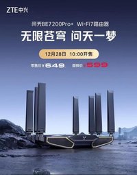 12月28日,中兴旗下备受瞩目的Wi-Fi 7新品路由器——问天BE7200Pro+,终于迎来了开售时刻,首发价599元。不知道有多少人在25号中兴发布问天的预告后,就在等开售后第一时间下单,今天10点,它终于要开售了!