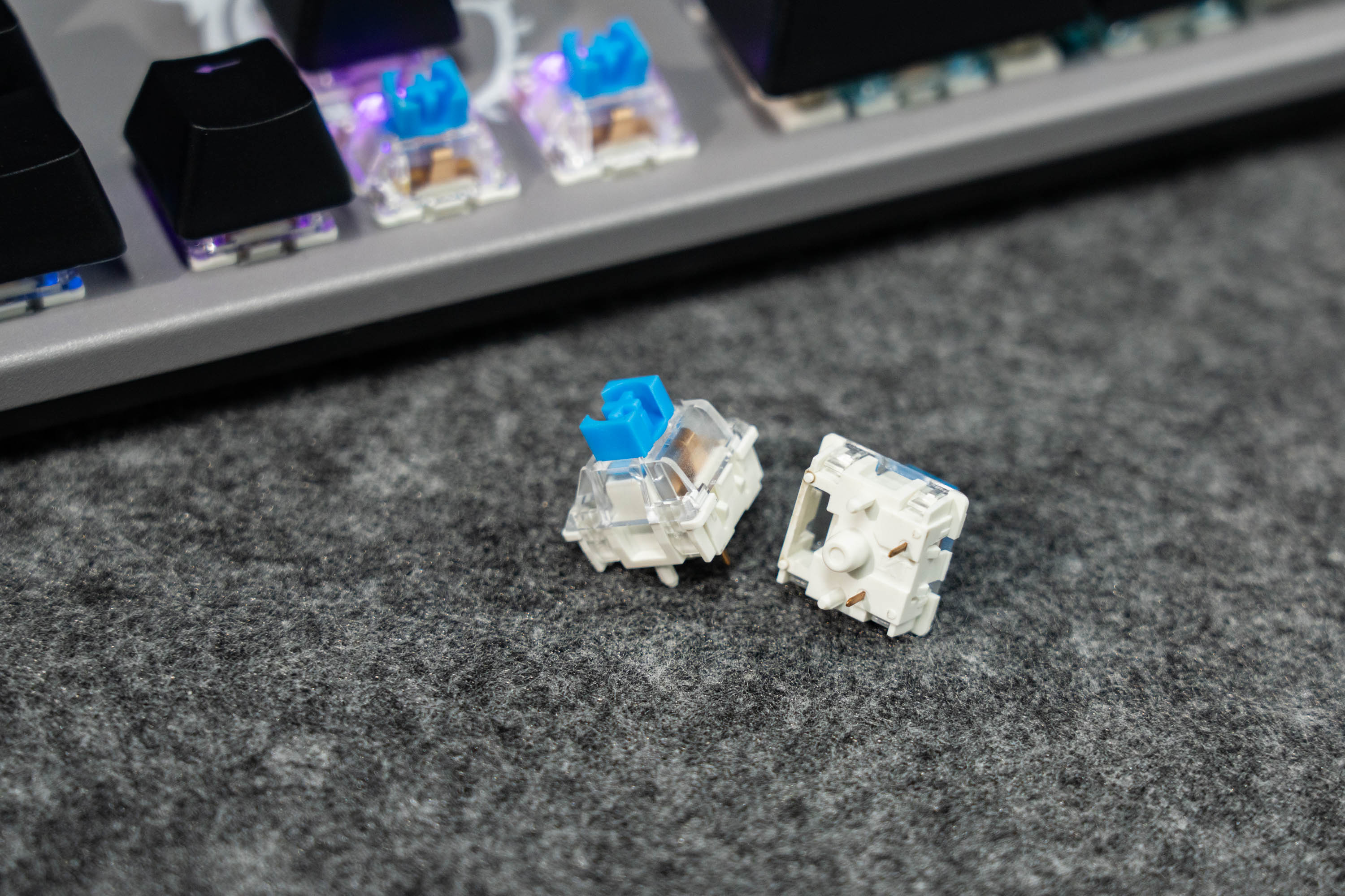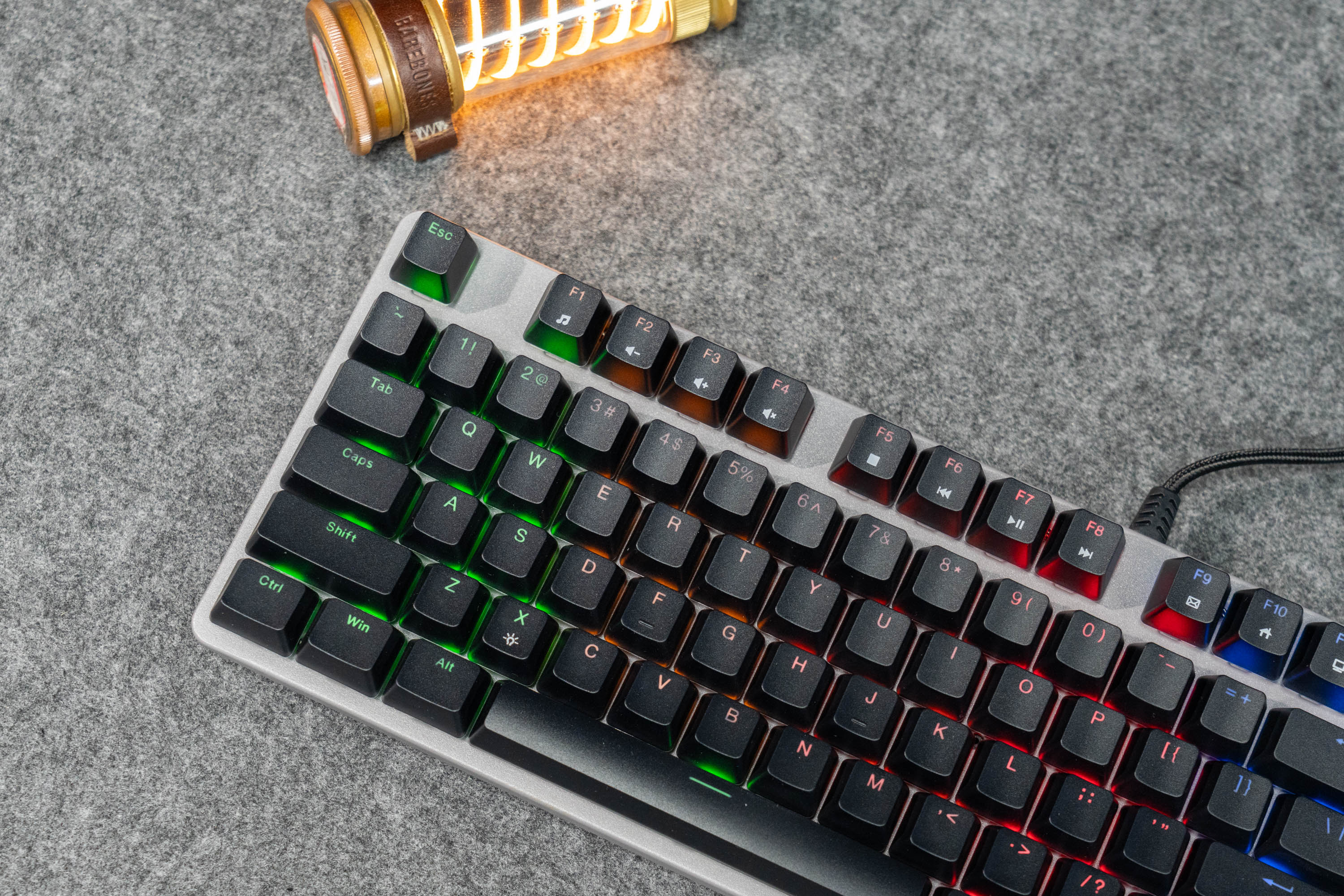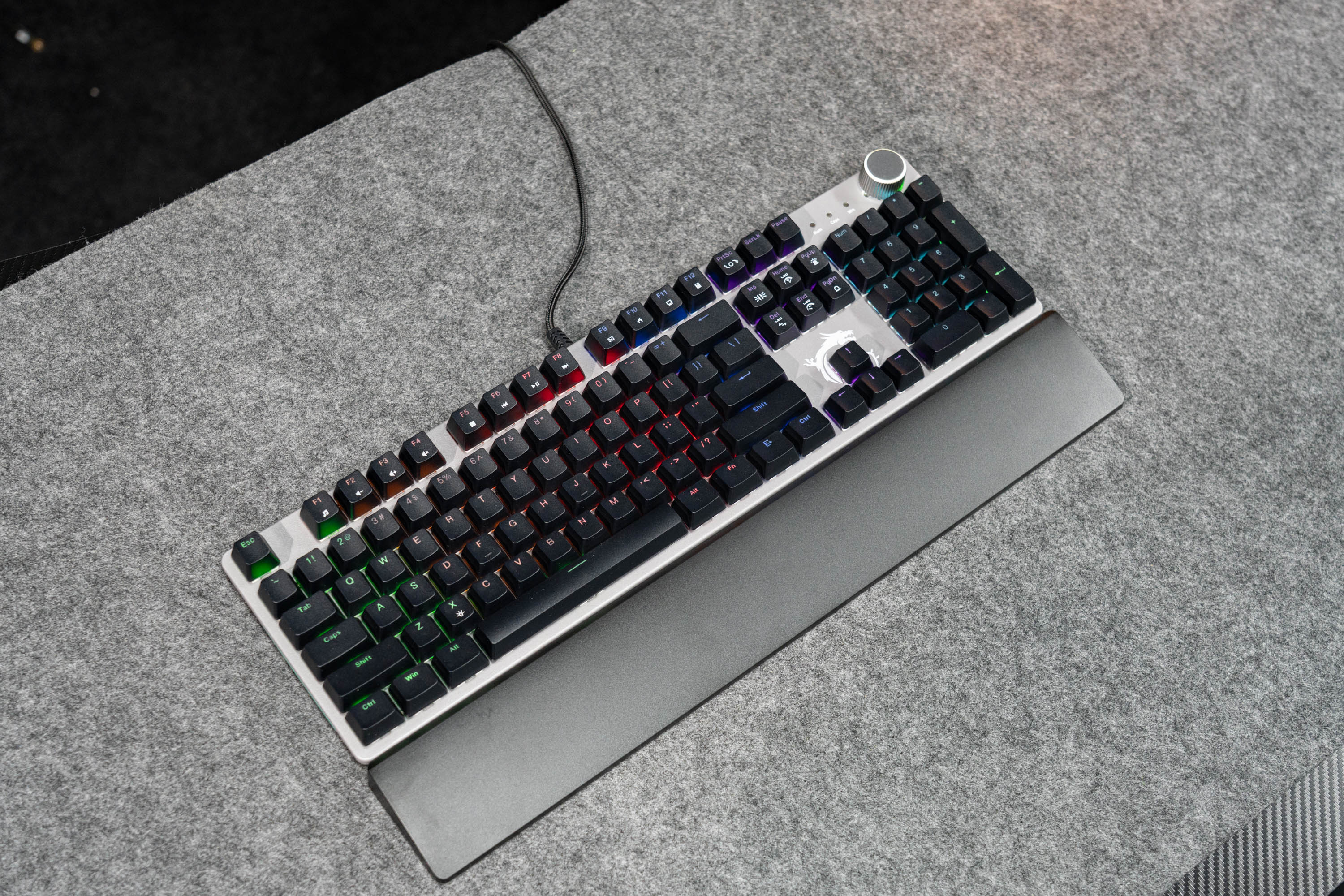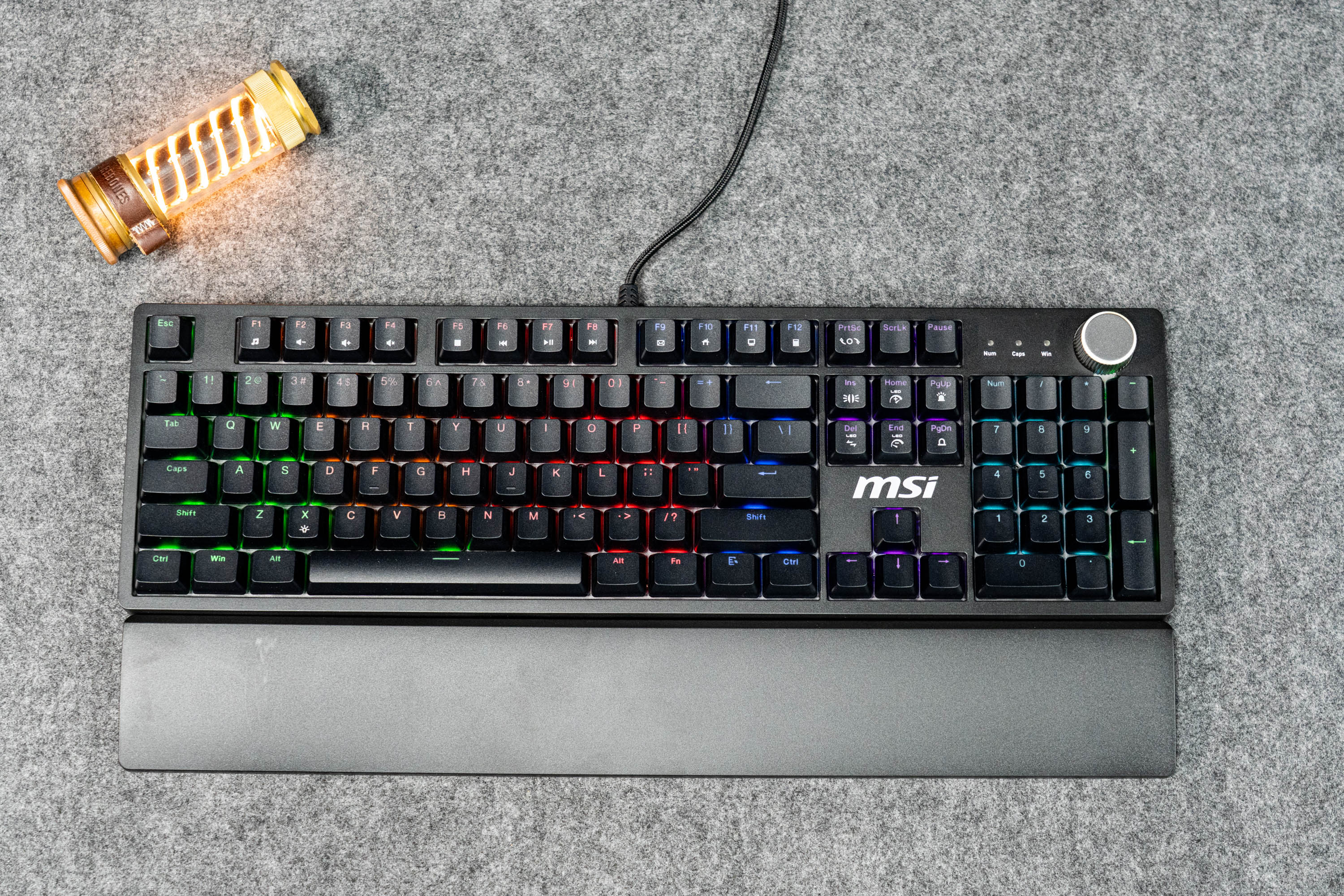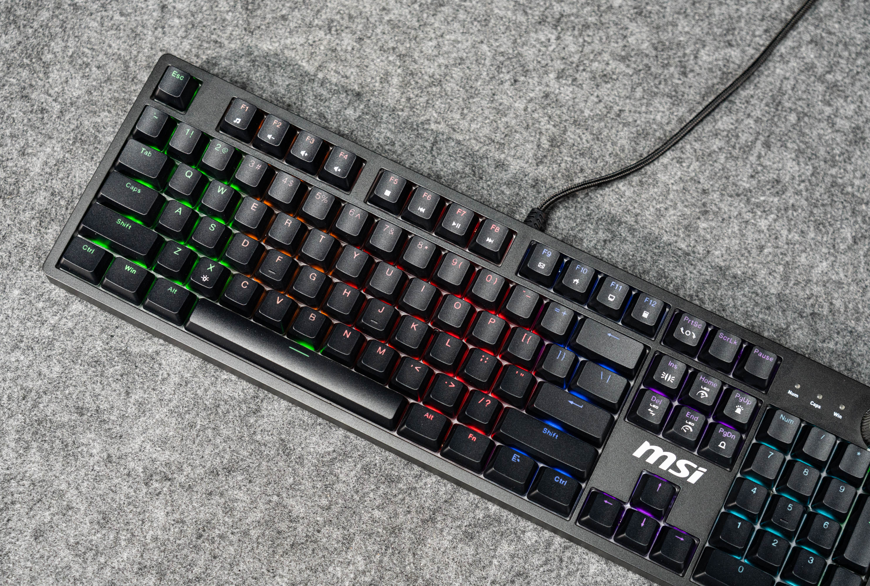 微星GK320游戏键盘采用了标准的104键布局,使用了USB接口的有线设计,能够实现全键的无冲突设计,配合上炫彩的RGB灯光效果和可拆卸的磁吸上盖板,还有可拆卸的掌托,让这把键盘拥有多种形态自由切换,并且还有支持热插拔的可更换的5爪机械轴体,升级无压力